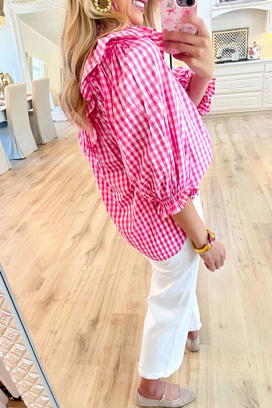 Pink Gingham Poplin Top